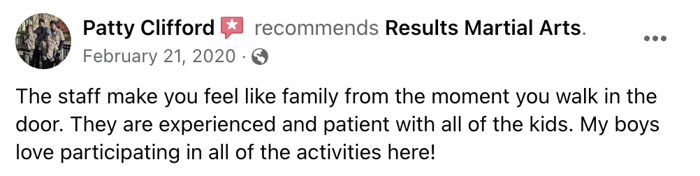 If you like what you see, don't miss your chance to become a part of our family here at Results Martial Arts!